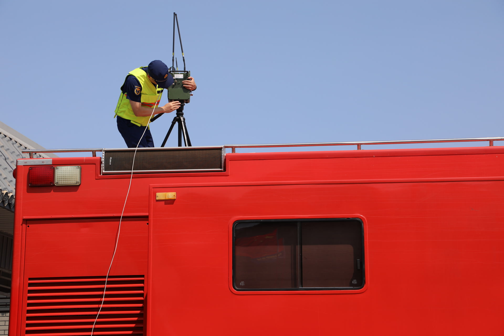 通信人員現(xiàn)場架設(shè)MESH自組網(wǎng)基站。